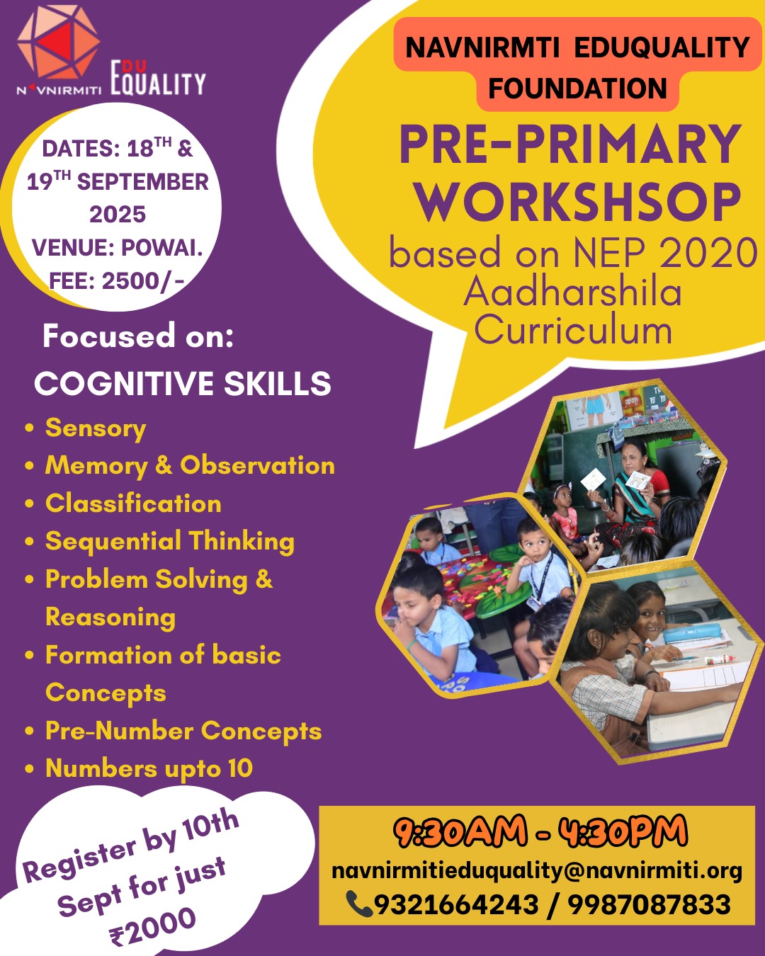 Read MoreNavnirmiti Eduquality Foundation invites you to a 2-day offline workshop designed to strengthen the foundation of joyful, cognitive skill-based learning in Early Childhood Education, aligned with the NEP 2020 -- Aadharshila Curriculum.