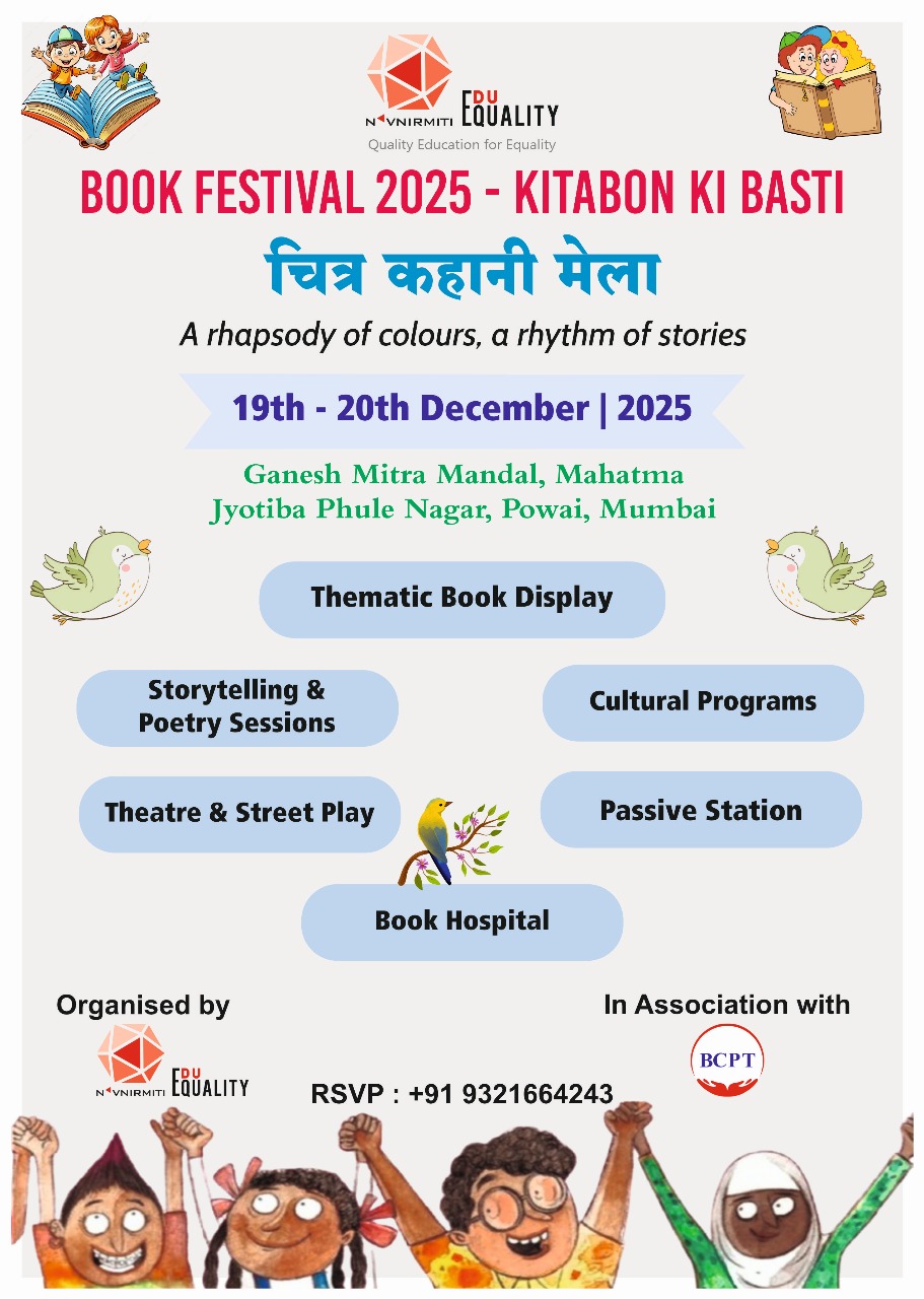Sign UpNavnirmiti Eduquality Foundation invites you to our Book Festival 2025, a two-day book festival celebrating stories, pictures, and creative expression. The festival brings together children, communities, artists, and book lovers to experience literature beyond the page.